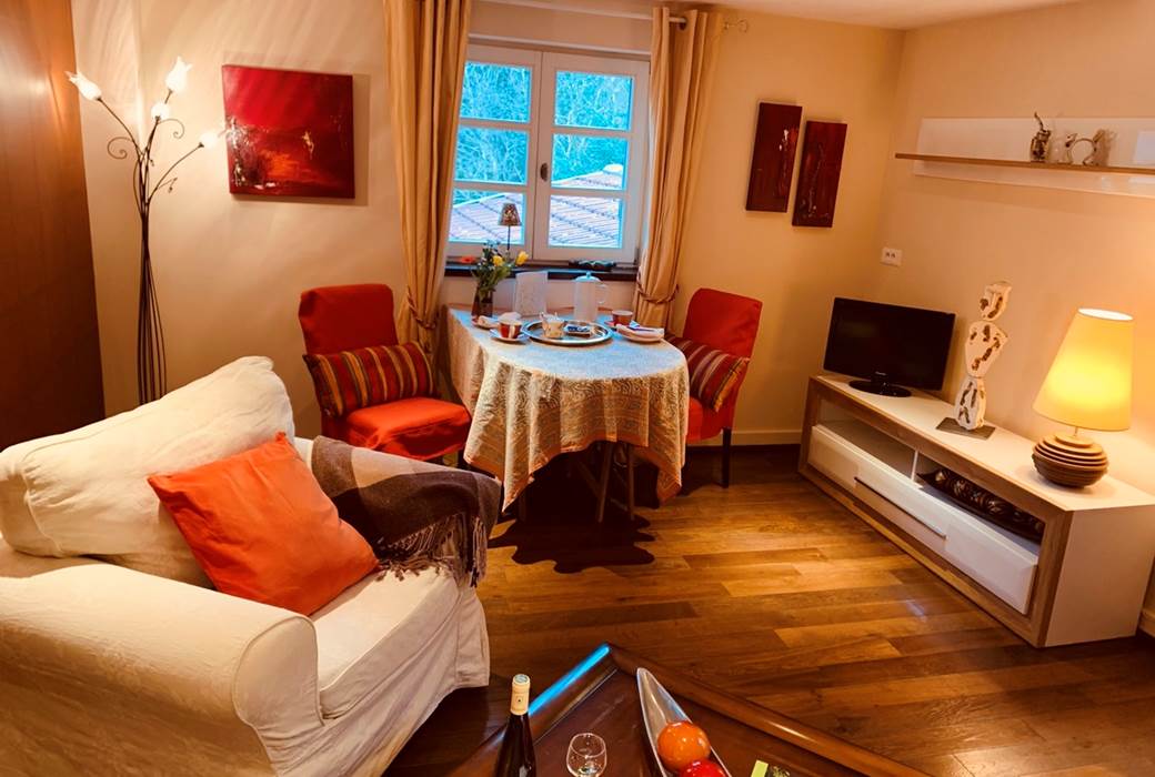 Profitieren Sie auch von einem großen privaten Garten - richten Sie Ihr Sonnenbad im Schatten der großen Kastanie oder auf der Terrasse ein. Nehmen Sie Ihre Mahlzeiten am großen Tisch in der Sonne oder geschützt auf der überdachten Terrasse ein. Es ist alles vorhanden, um schöne Momente in Ruhe zu verbringen.